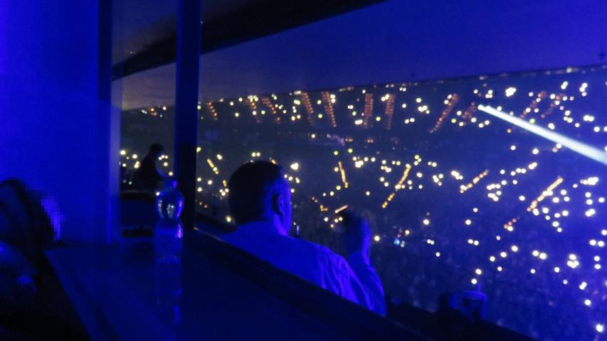 Wir begleiteten Mutter und Sohn in die Loge. So war Frau S. dem Sänger sehr nahe. Sie genoss es mit ihrem Sohn sehr. Öfter kullerten ihr die Tränen über die Wangen und sie wollte möglichst laut alles hören: „In der letzten Zeit brauchte ich oft laute Musik um mich herum,“ sagte sie. Wir blieben bis zum letzten Song. Frau S. schenkte uns ein dankbares Lächeln dafür.