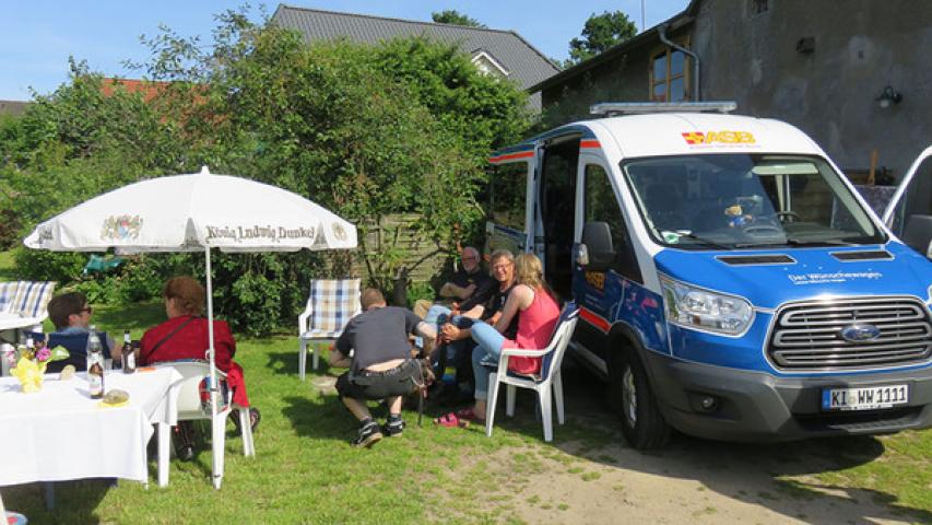 Unser Wunscherfüller Ronald Osterode, ein sehr guter Freund unseres Fahrgastes, hat sich der Sache angenommen und die Fahrt gemeinsam mit Sascha Köpke und Dr. Rudolf Kraft begleitet. Vom Hospiz, dem Rickers-Kock-Haus in Lübeck, ging es mit dem Wünschewagen ins 30 Kilometer entfernte Gleschendorf, wo die Familie des schwerkranken 73-Jährigen eine fröhliche Gartenparty vorbereitet hatte.