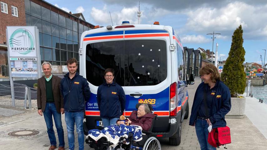 Ich arbeite im Rathaus, einige der Kolleginnen und Kollegen kennen den Wünschewagen und wissen, dass ich ehrenamtlich Fahrten begleite. Heiko Traulsen, Bürgermeister der Stadt, ist sofort interessiert und bietet Unterstützung an. Meine Wünsche sind klar: Fischbrötchen, Kaffee, einen schönen Platz, an dem wir sitzen können und, ach ja, Sonne wäre schön. Wir wären dann Samstag gegen 11.00 Uhr da. Klare Arbeitsteilung, ich bin guter Dinge, als ich Patrick und Laura im Hospiz in Gettorf treffe. Wir sind die „Drei Engel für Clara“ an diesem Tag, auch wenn ich abends das Gefühl habe, dass wir beschenkt wurden. Lucie, Claras Tochter, geht gemeinsam mit uns in das Zimmer, in dem ihre Mutter betreut wird. Ich frage nach dem Dialekt, beide kommen ursprünglich aus Berlin, Lucie kam der Liebe wegen vor fast 30 Jahren nach Schleswig-Holstein und ist geblieben, Clara hat viele Jahre fast 700 Kilometer entfernt im Süden Deutschlands gewohnt - und ist jetzt, in ihrer letzten Lebensphase, endlich da, wo sie sein möchte. Jetzt möchte sie nach Kappeln, ihrem ganz besonderen Sehnsuchtsort.